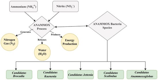The diagram shows the anammox process and their bacterial group.