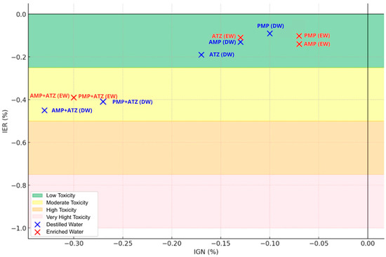 These calculations followed the methodologies described in previous studies [40]. The NRGPI and NRGPI values were used to classify the toxicity levels according to Table 1.