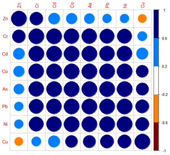 Correlation table of PTEs in soil.