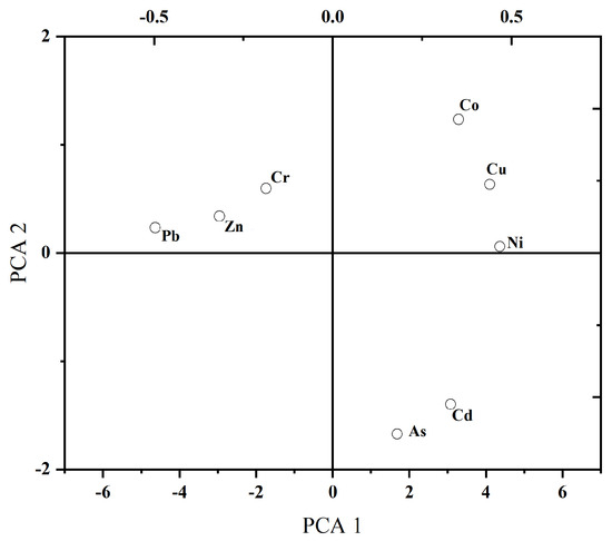 - The single factor pollution index showed that Cd and As were heavily polluting, Co was slightly polluting, and the other PTEs were non-polluting. The geoaccumulation index showed that Cd was highly accumulated; Pb, As, and Co were moderately accumulated; Cu and Zn were mildly accumulated; and Ni and Cr were not accumulated. The load of Co in principal component 2 was relatively high, and there was a correlation with most other PTEs, which may be due to pollution caused by the inclusion of some of the production waste residue and exogenous soil in backfill of the site.