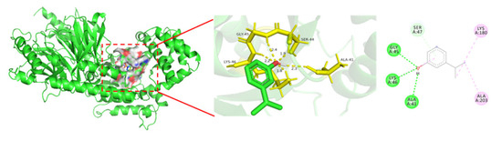 Molecular docking results of the 6C2Y protein with the lowest binding energy to 3-isopropylphenol.