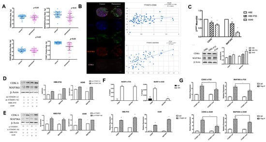 3.4. YTHDF1 Regulates Lung Carcinogenesis and Progression by Modulating CDK6 and MAP3K6