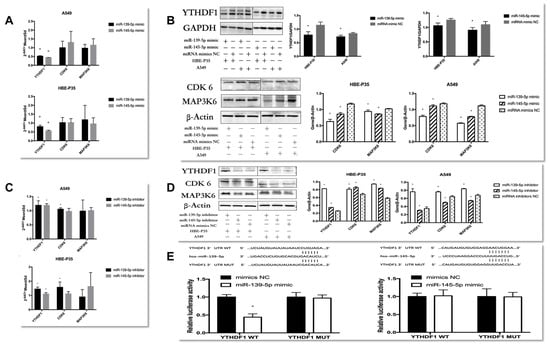 3.6. miR-139/145-5p Are Upstream Regulators of YTHDF1 in the Progression of Lung Cancer