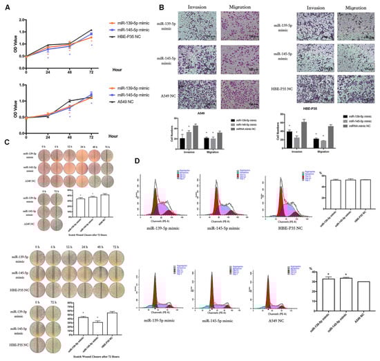 3.7. miR-139/145-5P Regulate the Proliferation, Cell Cycle, Migration, and Invasion of Lung Cancer Cells