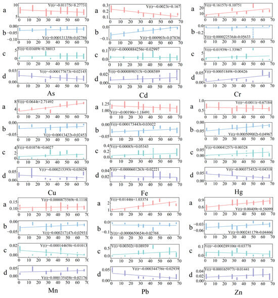 To ensure the reliability of the experimental data and results, the national standard substance was used for verification. Two parallel samples were set for every five samples, and blank samples and standard samples were also set. The recovery rates of each metal element were within the range of 91.6% to 105.2%, and the relative standard deviation of the measurement was less than 10%. The experimental water used is ultrapure water, and all reagents are of high-grade purity [28].