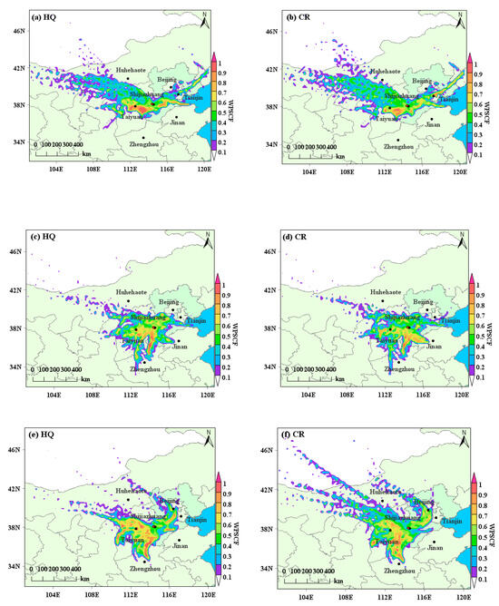 PSCF methods were applied to assess the public health impacts of regional sources from various PM2.5-associated sources in air on local human health. The potential non-cancer and cancer risk areas affecting the health of adults and children in Shijiazhuang were consistent. Before the heating period in 2019 (Figure 3a,b), the potential areas of high non-cancer risk were mainly located in eastern Shanxi, covering Taiyuan and Jinzhong; and eastern to southern Hebei, covering Cangzhou and Hengshui. The potential high cancer risk regions were mainly in east Shanxi, including Jinzhong; east to north of Tianjin; and Hebei, covering Tangshan. During the heating period in 2019 (Figure 3c,d), there were higher non-cancer risk values in the south of Hebei, covering Xingtai and Handan; the north of Henan, including Anyang and Hebi; and the east of Shanxi, covering Jinzhong. The potential high cancer risk regions were in the south of Hebei, covering Xingtai and Handan; northern Henan, including Anyang; and Shandong Liaocheng.