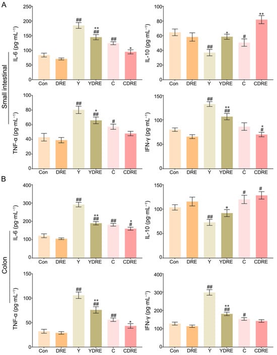 3.1.2. DRE Alleviated Intestinal Inflammation in Mice Exposed to Y or C