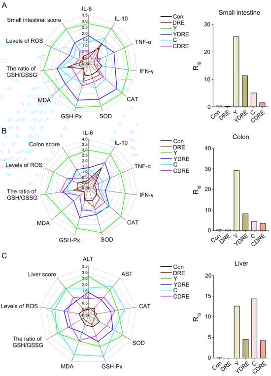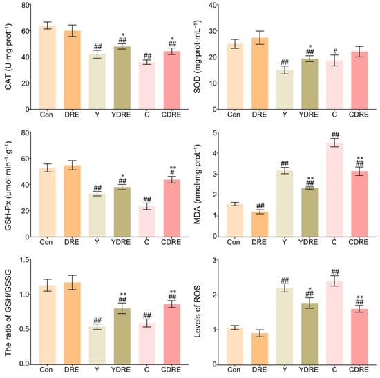 3.2.3. DRE Alleviated Liver Oxidative Stress in Mice Exposed to Y or C