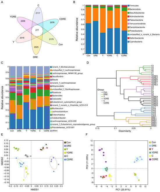 3.3. DRE Alleviated Gut Dysbiosis in Mice Exposed to Y or C