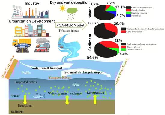 Water runoff from megacities, driven by coal and coke combustion sources, contributes to the transport and increased catchment retention of PAHs along the Yangtze River, China. Reprinted with permission from ref. [74]; copyright 2021, Elsevier.