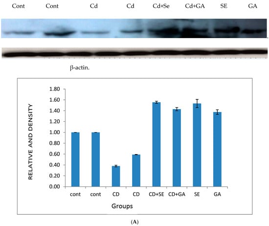 - Newairy, A.A.; El-Sharaky, A.S.; Badreldeen, M.M.; Eweda, S.M.; Sheweita, S.A. The hepatoprotective effects of selenium against cadmium toxicity in rats. Toxicology 2007, 242, 23–30. [Google Scholar] [CrossRef] [PubMed]