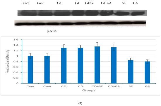 - Sheweita, S.A.; Rafea, A.A.E.; Elbana, S.G. The deleterious effects of cadmium on oxidative stress markers, drug-metabolizing, and antioxidant enzyme activities: Role of Silymarin and Garlic as Antioxidants. Environ. Sci. Pollut. Res. Int. 2023, 30, 112490–112502. [Google Scholar] [CrossRef] [PubMed]