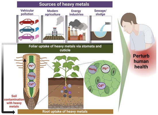- Rashid, A.; Schutte, B.J.; Ulery, A.; Deyholos, M.K.; Sanogo, S.; Lehnhoff, E.A.; Beck, L. Heavy Metal Contamination in Agricultural Soil: Environmental Pollutants Affecting Crop Health. Agronomy 2023, 13, 1521. [Google Scholar] [CrossRef]