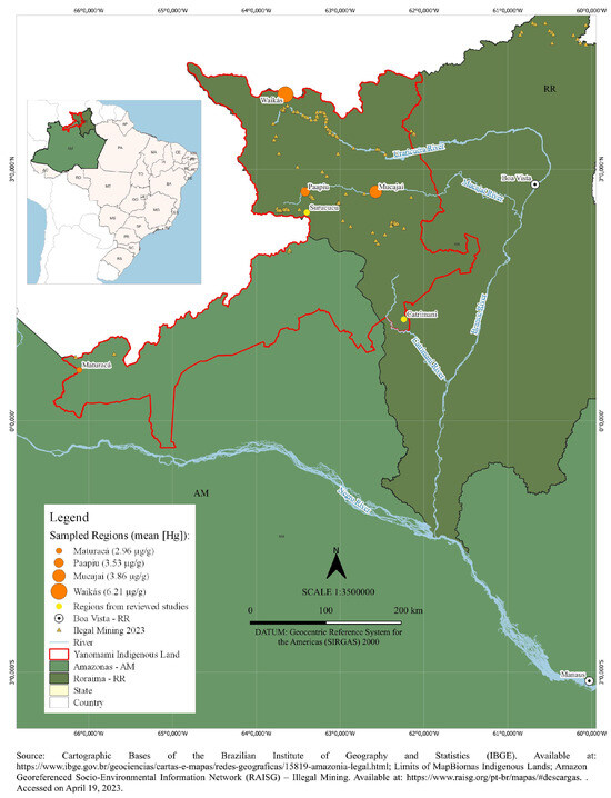 17. Vega, C.; Orellana, J.; Oliveira, M.; Hacon, S.; Basta, P. Human Mercury Exposure in Yanomami Indigenous Villages from the Brazilian Amazon. Int. J. Environ. Res. Public Health 2018, 15, 1051. [Google Scholar] [CrossRef] [PubMed]