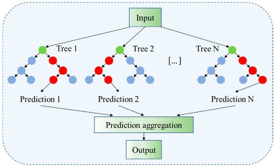 where represents the average output of all trees, which is the prediction result of the RF. is the number of decision trees in the RF. is the prediction result of the decision tree. The RF model diagram is shown in Figure 2.