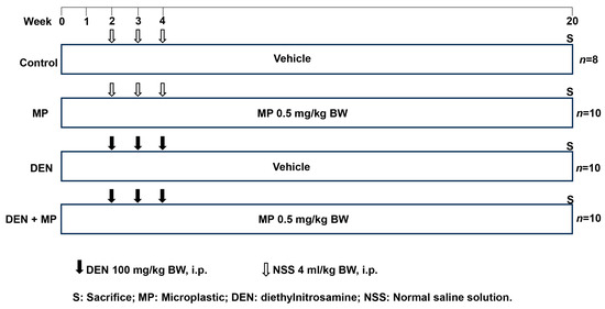 - Huang, H.; Hou, J.; Yu, C.; Wei, F.; Xi, B. Microplastics exacerbate tissue damage and promote carcinogenesis following liver infection in mice. Ecotoxicol. Environ. Saf. 2024, 286, 117217. [Google Scholar] [CrossRef] [PubMed]
