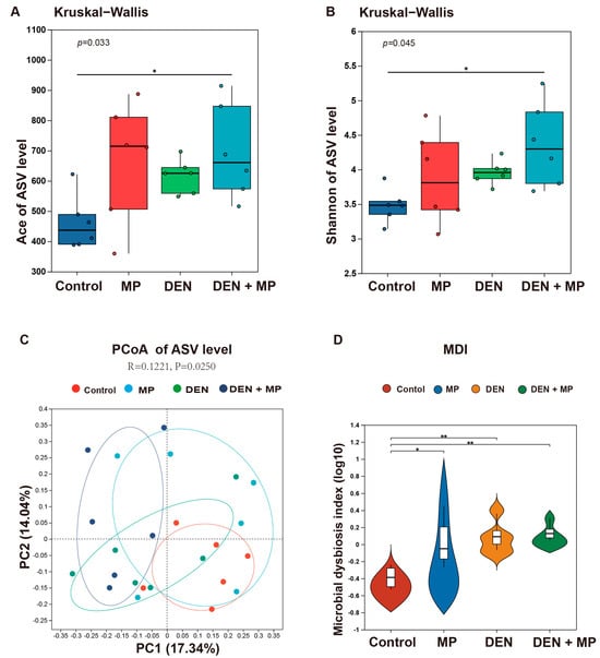 3.4. MPs Changed the Gut Microbiota Composition of DEN-Induced Rats