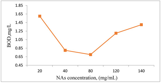 Figure 10. Graphical representation of BOD in the presence of different concentrations of NAs.