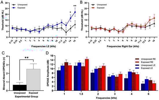 | Frequency (kHz) | Left Ear Exposed | Left Ear Unexposed | Left Ear p-Value | Right Ear Exposed | Right Ear Unexposed | Right Ear p-Value |