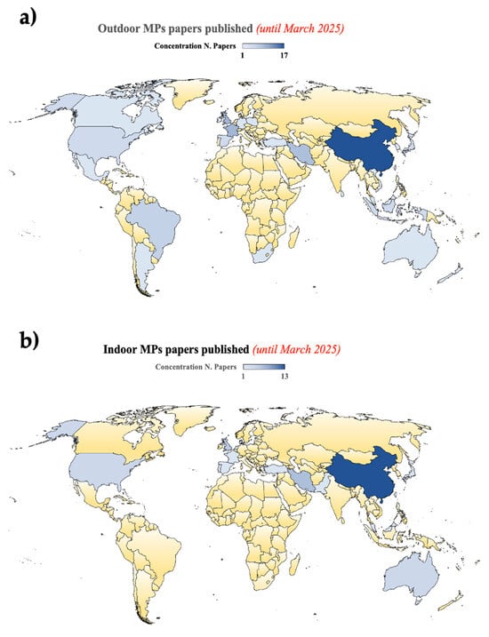 Countries that have published about outdoor MPs (a) and indoor MPs (b).