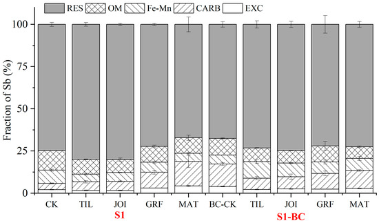 The redistribution of Sb fractions in the rhizosphere (S1: soil; S1-BC: soil with biochar).