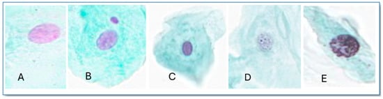 - Kashyap, B.; Reddy, P.S. Micronuclei Assay of Exfoliated Oral Buccal Cells: Means to Assess the Nuclear Abnormalities in Different Diseases. J. Cancer Res. Ther. 2012, 8, 184–191. [Google Scholar] [CrossRef]