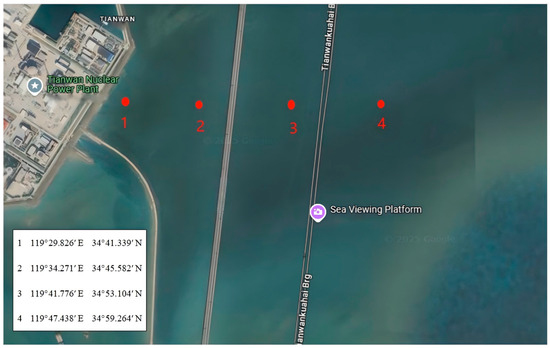 Schematic diagram showing the locations of the four sampling points around the Tianwan Nuclear Power Plant.