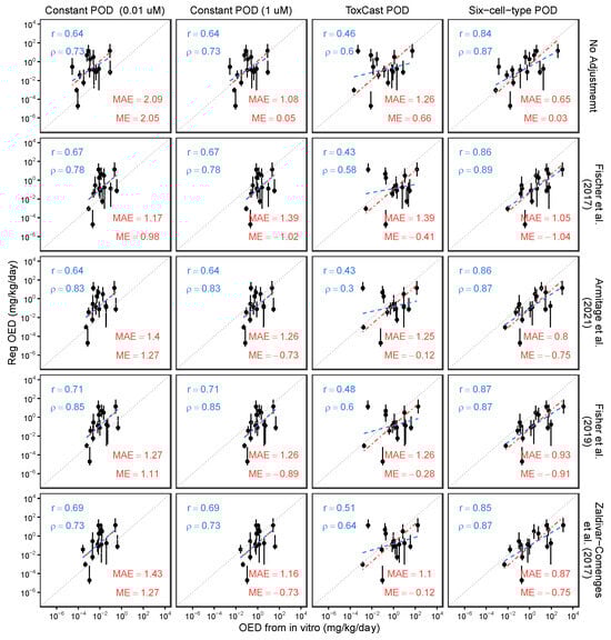 3.3. Model Application: Effects of In Vitro Bioavailability Adjustment on In Vitro–In Vivo Concordance of POD Estimations