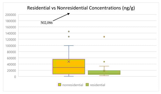 3.3. Comparison of Levels in Residential and Non-Residential Locations