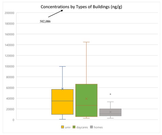 - Luongo, G.; Ostman, C. Organophosphate and phthalate esters in settled dust from apartment buildings in Stockholm. Indoor Air 2016, 26, 414–425. [Google Scholar] [CrossRef]