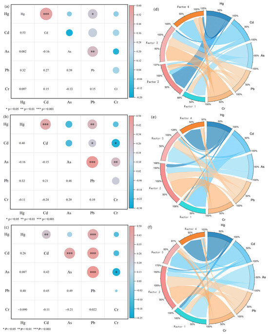 The results, including the correlation heat map and PMF outcomes, are displayed in Figure 4 and Table 3. The contribution of different factors to different heavy metals is shown in Table S5.