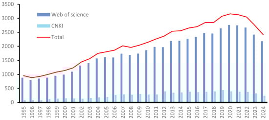 The dynamic changes in the number of literature, to a certain extent, reflect the academic community’s attention and research progress on quinone compounds. This article conducted searches in the China National Knowledge Infrastructure (CNKI) and Web of Science databases. In CNKI, the advanced search method was adopted, with “quinones (exact)” as the search term; in the Web of Science, the search condition is set as: Topic = “quinone”. The search period was set from 1995 to 2024. After the search, 62,241 literature were obtained, among which 7927 were included in CNKI and 54,314 were included in the Web of Science. The number of references on quinone compounds has generally shown an upward trend. An increasing number of new quinone compounds have been extracted, separated, and identified, and their pharmacological activities and synthesis pathways have been further elucidated. This review elaborates on the chemical constituents, synthesis pathways, pharmacological activities, and toxicities of quinone compounds in traditional Chinese medicine, with the aim of providing scientific references for subsequent research on the pharmacological activities of quinone compounds, toxicity prevention and control, and safety evaluation standards.Figure 1 introduces the number of references based on quinone compounds.