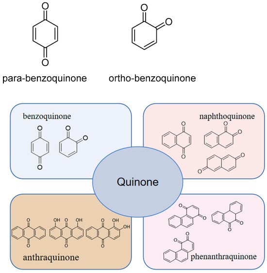 Benzoquinones are structurally divided into two major groups: ortho-benzoquinone and para-benzoquinone, and compounds with pro-benzoquinone structures are unstable; therefore, most naturally occurring benzoquinone compounds are para-benzoquinone derivatives []. The substituents of benzoquinone are more varied and are usually classified into small and large groups. Common small groups include hydroxyl, methoxy, carboxyl, and smaller hydrocarbon groups containing less than three carbons, while large groups include saturated or unsaturated chain hydrocarbons containing more than three carbon atoms, benzene rings, and more complex carbon-containing substituents. Figure 2 introduces the classification of the skeletal structures of quinone compounds.