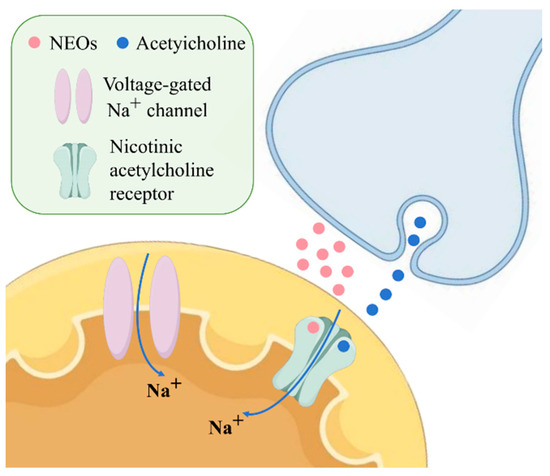 - Costas-Ferreira, C.; Faro, L.R.F. Neurotoxic effects of neonicotinoids on mamma1s what is there beyond the activation of nicotinic acety1cho1ine receptors a systematic review. Int. J. Mol. Sci. 2021, 22, 8413. [Google Scholar] [CrossRef]