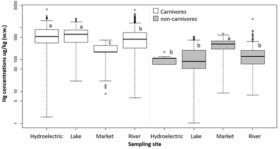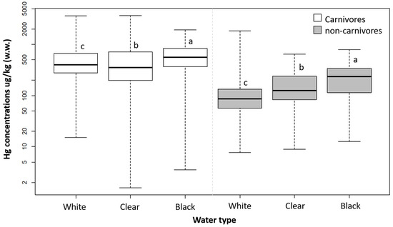 - Belger, L.; Forsberg, B.R. Factors controlling Hg levels in two predatory fish species in the Negro river basin, Brazilian Amazon. Sci. Total Environ. 2006, 367, 451–459. [Google Scholar] [CrossRef]