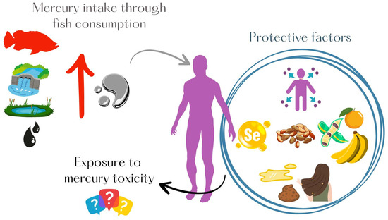 - Pierezan, M.D.; Hoff, R.B.; Marsico, E.T.; Verruck, S. Total mercury and methylmercury levels in Brazilian Amazon fish: A scope review with meta-analysis and local population health risk assessment. J. Trace Elem. Miner. 2024, 10, 100196. [Google Scholar] [CrossRef]