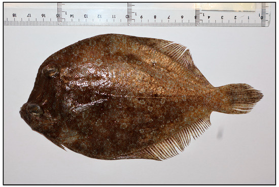 Bothus podas (Delaroche, 1809) (commonly known as the wide-eyed flounder) is a demersal flatfish inhabiting sandy and muddy substrates in coastal areas (Figure 1). B. podas is an ecologically important species, both as a benthic predator for small fish and invertebrates in addition to being prey for large predators, especially as it is considered to be one of the top five contributors to β-diversity in shallow sandy and muddy habitats [13]. Furthermore, considering B. podas is often caught as by-catch, it could be a species for cost-effective monitoring, especially considering its wide geographical range. Due to its bottom-dwelling behaviour and close contact with sedimentary environments where MPs accumulate, B. podas could be a relevant bioindicator for assessing microplastic pollution and its biological effects, giving a realistic picture of the effects of MP pollution in shallow benthic ecosystems. However, the physiological impacts of MP exposure on this species remain largely unexplored.