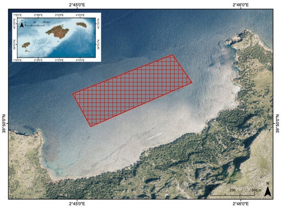 Sampling location in the northwest of Mallorca (Balearic Islands) highlighted on a map generated in ArcGIS 10.8.2 using the World’s Oceans basemap (Esri, Garmin, NOAA NGDC). The inset displays the full Balearic Islands, with the study site marked by a square.