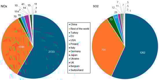 Figure 8 presents a comparison of NOx and SO2 emissions (in gigatons) in 2019, in various countries, where the ‘rest of the world’ does not include the listed countries.