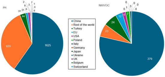 (left) M emissions (gigatons) and (right) NMVOC from the cement industry in 2019. Processed from the data available in [].