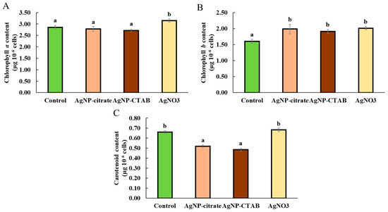 C. vulgaris after exposure to AgNPs and AgNO