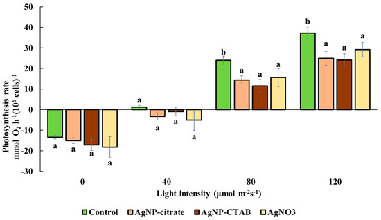 Given the potential negative effects of AgNPs on algal photosynthesis, the present study investigated the impact of AgNPs stabilized with two different coatings, citrate (AgNP-citrate) and CTAB (AgNP-CTAB), on the photosynthetic performance of the green microalga