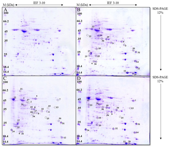 3 resulted in a similar number of proteins with altered expression (21 and 20, respectively), most of which showed increased expression, while treatment with AgNP-CTAB induced changes in the expression of 27 proteins, which were mainly downregulated. These differences in the regulation of protein expression can be directly linked to the effects of the different AgNPs coatings. Indeed, the results of the study conducted on