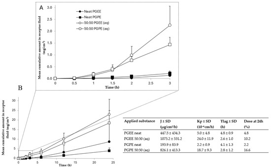 - Characterize the human skin permeation of PGEE and PGPE when applied neat or in aqueous solutions providing the permeation rates (J), lag times (Tlag), and permeability coefficients (Kp) from human in vitro skin permeation experiments using a flow-through diffusion cells system;