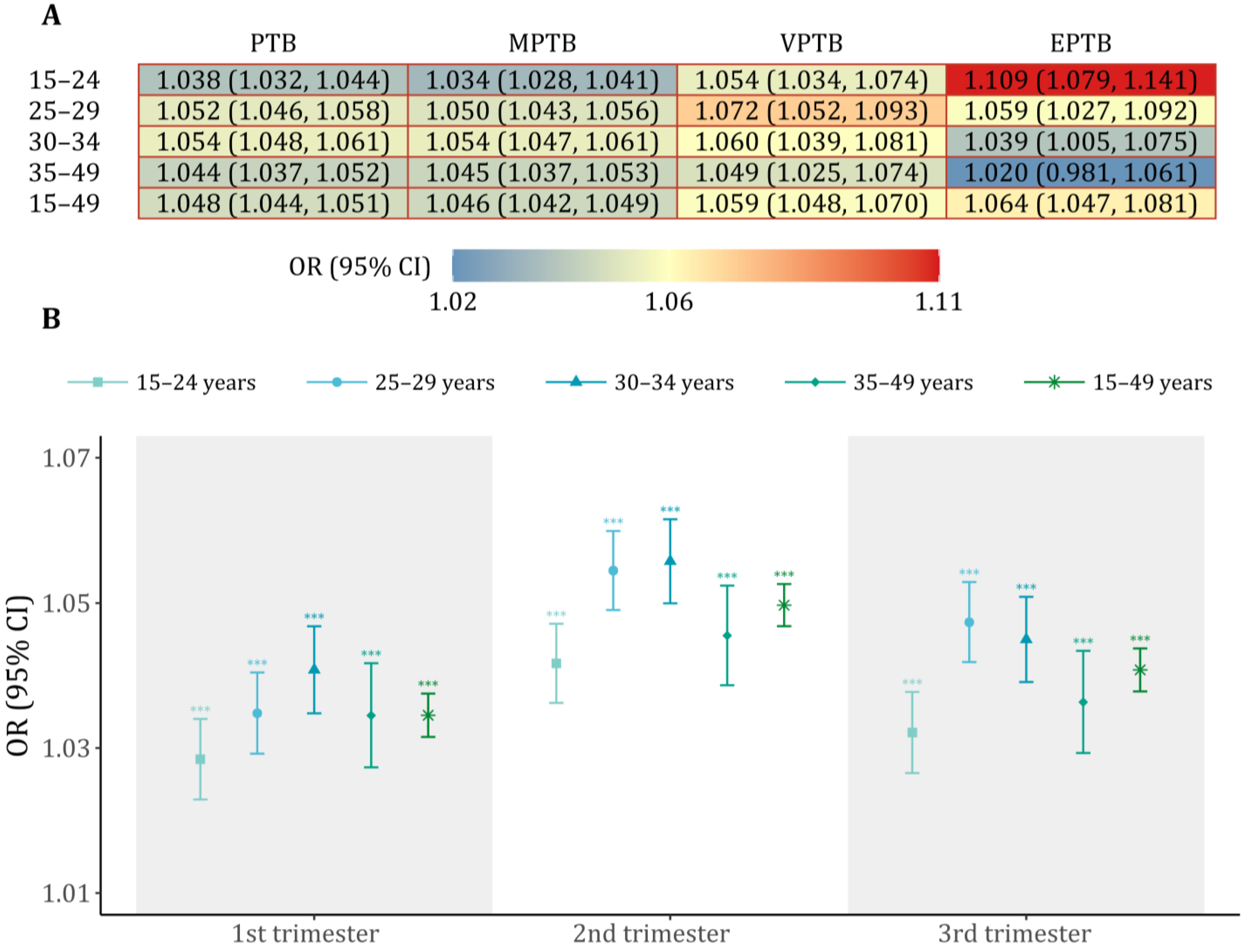 2.2.1. Associations of PM2.5 Exposure with PTB Outcomes