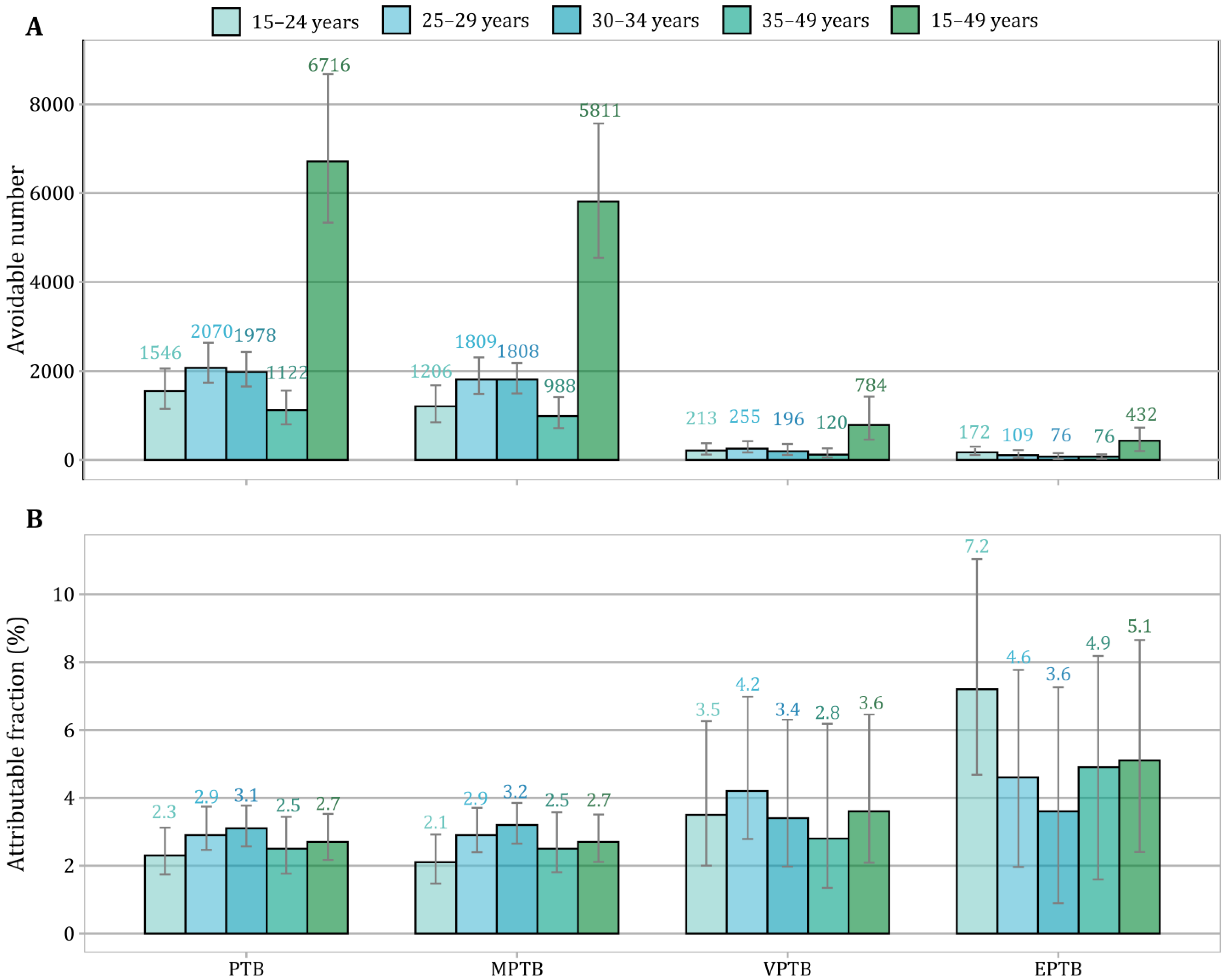 2.2.2. Assessment of PTB Burden Attributable to PM2.5