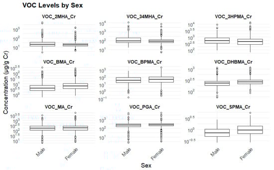 For most VOC metabolites—except 2MHA and 3,4MHA—mean concentrations were consistently higher in females (Table 4) (Figure 2).