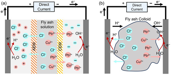 Electrochemical techniques have emerged as promising strategies for the recovery and selective separation of heavy metals from FA. By leveraging redox potential gradients, these methods facilitate the targeted migration and deposition of metal ions, thereby enabling efficient separation and recovery. Among the various electrochemical approaches, electrodialysis (ED) and electrokinetic remediation (EKR) are the most commonly applied [110].