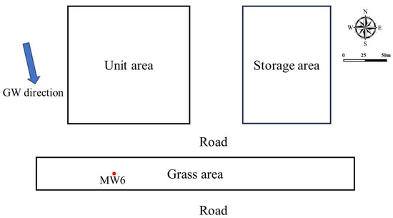 Groundwater contaminated by CT was gathered. The investigation site is located in a petrochemical plant in central China that has been operational for over 40 years. Figure 1 displays the layout of the contaminated site as well as the monitoring well positioning. The aquifer medium was mainly composed of silt in the depth range. Primarily, the groundwater type is Quaternary phreatic groundwater from 2 m to 13 m beneath the surface. The natural groundwater flow direction was principally from the north towards the south. Groundwater (MW6) was gathered using Micro-Purge groundwater sampling equipment (Sample PRO, QED Environmental Systems Limited Inc., 2355 Bishop Circle West Dexter, MI 48130, USA) after the well washing.