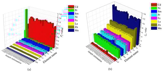 In order to evaluate the heavy metal pollution status in the Meitan tea area, Igeo and Pi for each trace element were analyzed. The results showed that the average Igeo value of trace elements in Meitan area was below 0, and the average Pi value was below 1 except in the townships of SL and CL (Figure 2). Therefore, the soil in Meitan was not contaminated by the elements of Mn, Zn, La, Fe, Ni, and Sm, indicating that the overall soil quality is relatively clean.